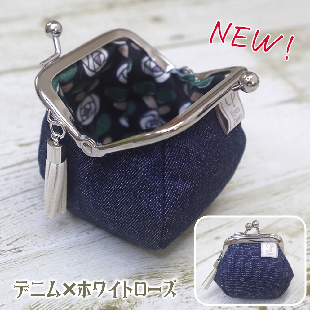 元気すぎてちょっと恥ずかしい!という方には、がま口を開けた時にパッと楽しくなるデニムバージョンもお勧めです♪